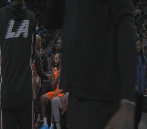 在对阵独行侠时,小卡最后一节防守克莱时表现挣扎,快船随后暂停,保罗在暂停时询问小卡是否还好,并告诉他需要换防。