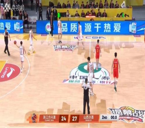 首节比赛一开始山西队获得球权,焦海龙三分球命中,卡尔顿篮下强打两分,巴里-布朗突破上篮打进,不过接下来山西队一波8-0打停了广厦队。暂停回来广厦队迅速追平并反超了比分,首节比赛结束广厦队以25-19领先山西队6分。