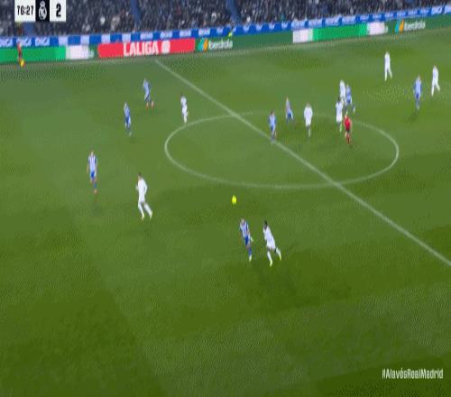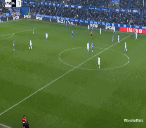 第68分钟,阿拉维斯这边也是中后场快速反击,布兰科一记精准的超远距离过顶长传撕破皇马防线,刚刚替补登场不到1分钟的维森特高速插上将球卸下,顺势杀入禁区获得单刀良机,维森特调整好脚步大力兜射,皮球应声入网,阿拉维斯1:1扳平比分。第75分钟,皇马获得禁区弧顶左侧位置很好的任意球机会,罗德里戈操刀主罚没有打好,大力兜射直接打了飞机。1分钟后,皇马快速反击转移到左侧,维尼修斯高速插上接球,头球往前一顶人球分过强行过掉回防的奥托,维尼修斯突入禁区后横传做饼,后排插上拍马赶到的罗德里戈小禁区前沿超近距离单刀直接推射得手,皇马2:1再次取得领先。之后皇马后防没有再坑,2:1笑到最后止住颓势。