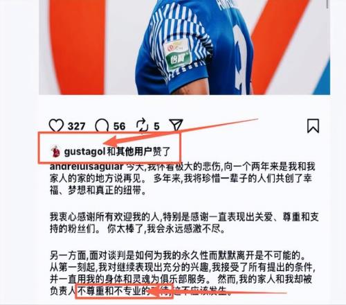 这句话节选于安德烈路易斯社交平台上,控诉上海申花将自己无情扫地出门后,一段痛心控诉。