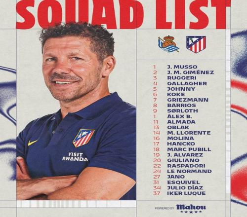 北京时间1月4日,马德里竞技官方公布了西甲第18轮客场对阵皇家社会的大名单。